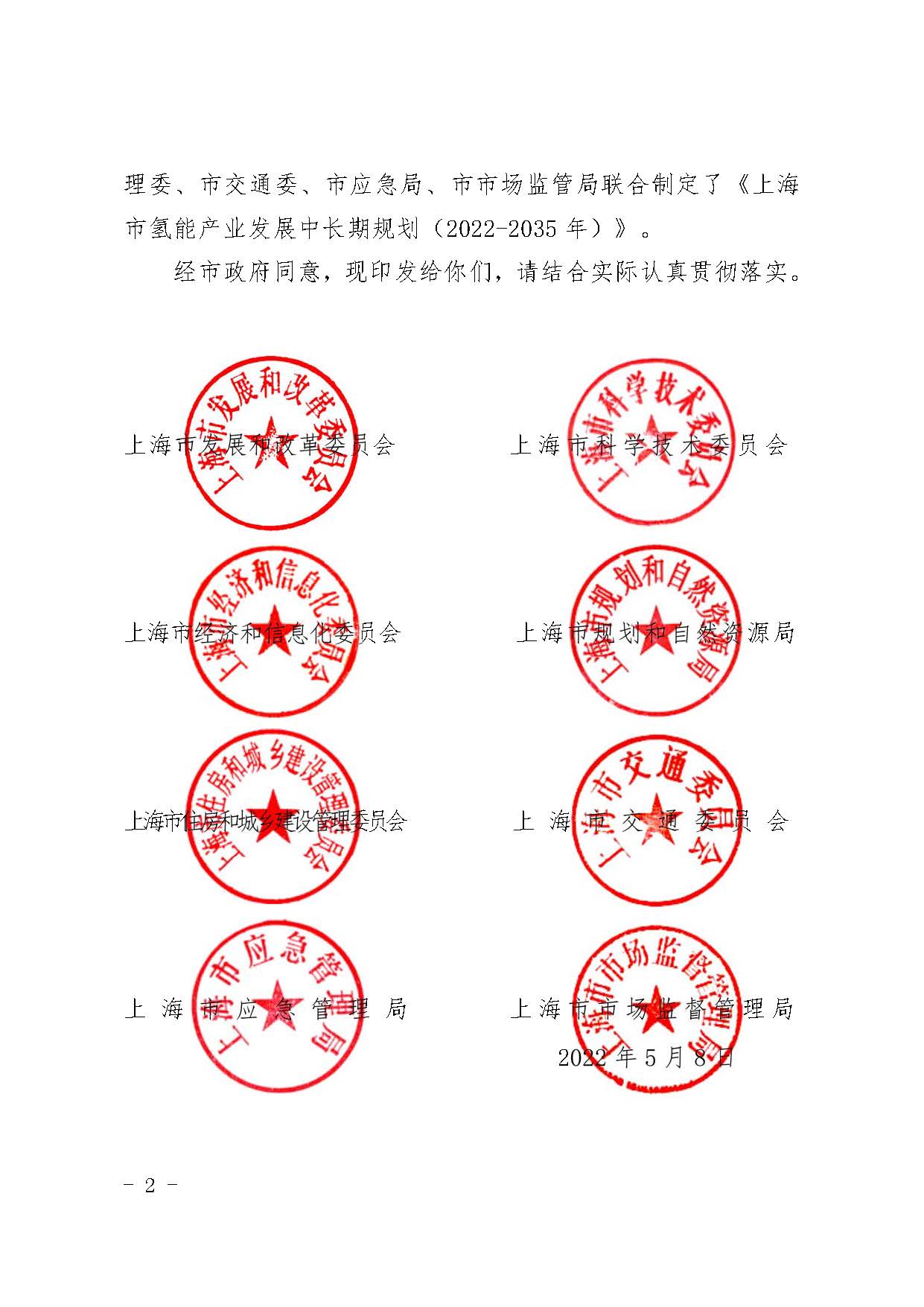 关于印发《上海市氢能产业发展中长期规划(2022-2035年)》的通知